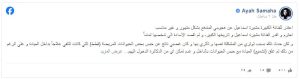 وكتبت آية عبر صفحتها الرسمية:”أعتذر للفنانة الكبيرة مشيرة إسماعيل عن هجومي المندفع وغير المناسب، أحترمها وأقدر تاريخها الكبير، ولم أقصد الإساءة إليها على الإطلاق. ما حدث كان نتيجة توتري وتأثري بالموقف، خاصة بعد حبس عدد من الحيوانات المريضة داخل العيادة عقب إغلاقها، دون السماح للأطباء باستكمال العلاج”.