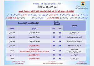 اقرا ايضا ..الارصاد تخذر المواطنين… موجة حارة تضرب البلاد ابتداءمن اليوم