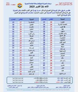 اقرا ايضا ..رطوبة عالية… هيئة الأرصاد الجوية تكشف حالة الطقس بالقاهرة والوجه القبلي