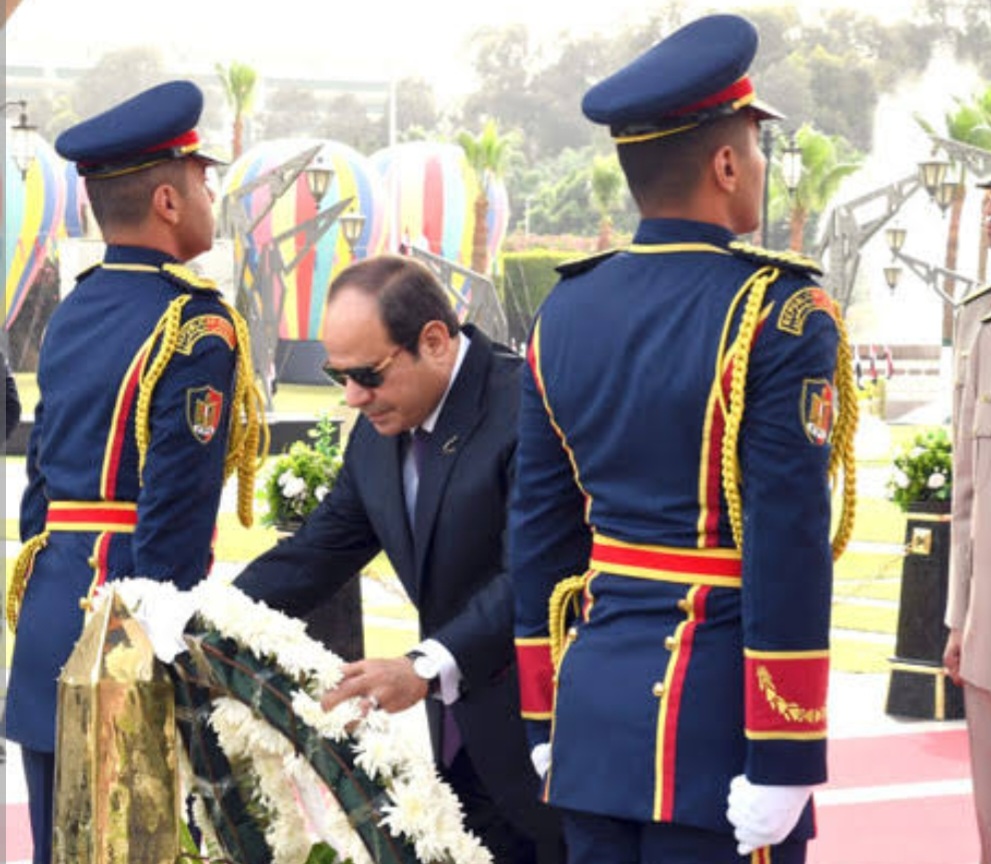 وصرح المتحدث الرسمي باسم رئاسة الجمهورية أن السيد الرئيس توجه كذلك إلى قبر الرئيس الراحل محمد أنور السادات، وقام بوضع إكليلا من الزهور وقراءة الفاتحة ترحمًا على روحه الطاهرة.