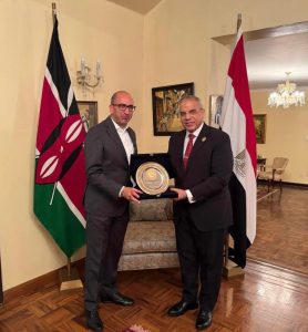 حيث إستقبل سفير مصر بكينيا السفير حاتم يسري،  اللواء وليد البارودى بترحاب شديد ومميز خاصة وفي بداية اللقاء، أعرب “البارودي” عن سعادته  البالغة و تقديره لحفاوة الاستقبال الذي حظي به في دولة كينيا ومن سفير مصر بالدولة الكينية .