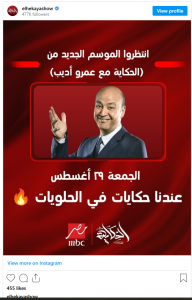 يعود الاعلامي عمرو أديب لتقديم موسم جديد من برنامجه “الحكاية” المذاع على شاشة “mbc مصر” وذلك بعد انتهاء إجازته.