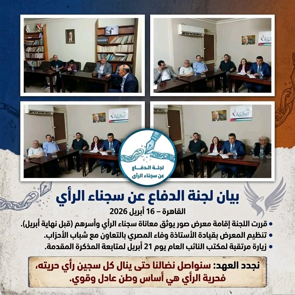 وقررت اللجنة عمل زيارة لمكتب النائب العام بالرحاب يوم الثلاثاء الموافق ٢١ ابريل ٢٠٢٦ الساعه ١٢ ظهرا، بمجموعة مشكلة من أعضاء اللجنه من رؤساء الأحزاب والمنظمات الحقوقيه وشخصيات عامه وسياسيين، لمتابعة ما تم فى المذكره المقدمه له.