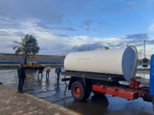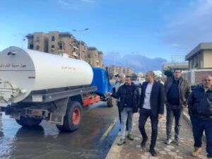 كما تضمنت الجولة المرور على مختلف أحياء المدينة، ومتابعة انتشار فرق التشغيل والصيانة، والتأكد من كفاءة عمل عربات الشفط والتعامل الفوري مع بلاغات الصرف الواردة من المواطنين، إلى جانب الاهتمام بنظافة وصيانة البالوعات لضمان سرعة تصريف مياه الأمطار.