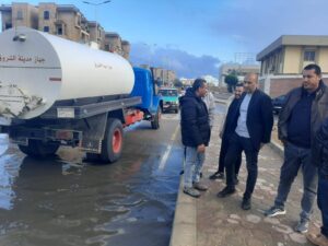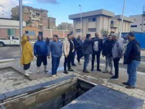كما تضمنت الجولة المرور على مختلف أحياء المدينة، ومتابعة انتشار فرق التشغيل والصيانة، والتأكد من كفاءة عمل عربات الشفط والتعامل الفوري مع بلاغات الصرف الواردة من المواطنين، إلى جانب الاهتمام بنظافة وصيانة البالوعات لضمان سرعة تصريف مياه الأمطار.