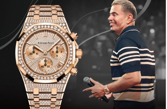لكن اللافت في إطلالته كانت الساعة اليد التي كان يرتديها، حيث اختار دياب ساعة يد من ماركة “Audemars Piguet”، والتي لفتت الأنظار بأناقتها وفخامتها. يتميز جسم الساعة بأنه مصنوع من الذهب عيار 18 قيراطاً، بينما تتميز الأساور بالذهب الوردي والمرصعة بالألماس.