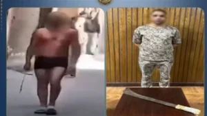 تمكنت الاجهزة الامنية ، بوزارة الداخلية ، في كشف ملابسات مقطع فيديو تم تداوله بـ مواقع التواصل الإجتماعى تضمن قيام أحد الأشخاص مجرد من ملابسه بالتلويح بسلاح أبيض وإلقائه حجارة على أحد المواطنين بالإسكندرية.
