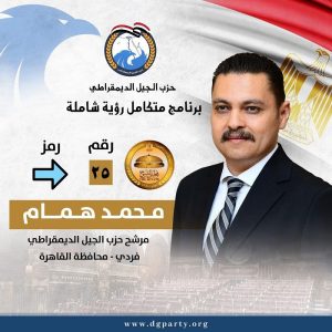 في إطار الاستعدادات للاستحقاقات النيابية المقبلة، وبعد إعلان الهيئة الوطنية للانتخابات فتح باب الترشح لانتخابات مجلس الشيوخ، أعلن محمد همام مرشح حزب الجيل الديمقراطى، فردى محافظة القاهرة ، عن إطلاق برنامجه الانتخابي تحت عنوان: “برنامج متكامل .. رؤية شاملة”، والذي يجسد توجهاته الوطنية الإصلاحية، ويعبر عن رؤيته لبناء دولة مدنية حديثة قائمة على العدالة والكرامة الإنسانية.