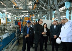 توجه الدكتور مصطفى مدبولي، رئيس مجلس الوزراء، ومرافقوه، إلى شركة مصر للألومنيوم، إحدى شركات الشركة القابضة للصناعات المعدنية التابعة لوزارة قطاع الأعمال العام؛ وذلك لتفقد خط الإنتاج الجديد لـ “سلك الألومنيوم” الذي تم البدء في تشغيله مؤخرًا، حيث كان في استقباله المهندس محمد شيمي، وزير قطاع الأعمال العام.