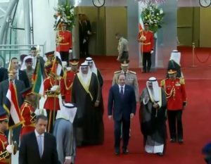 وأجريت مراسم استقبال رسمية للسيد الرئيس السيسي، حيث تم عزف النشيد الوطني