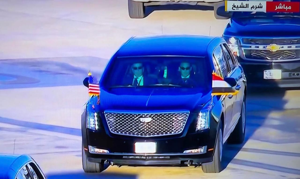 تاجز: استقل الرئيسين سيارة "الوحش"الحماية القصوى للمسؤولين الأمريكيين.الرئيس الأمريكيالرئيس الأمريكي دونالد ترامبالرئيس عبد الفتاح السيسيتفاصيل سيارة الرئيس الأمريكى دونالد ترامبجنرال موتورز (Cadillac)دونالد ترامبسيارة الرئاسة الأمريكيةقمة شرم الشيخ للسلام»مطار شرم الشيخ