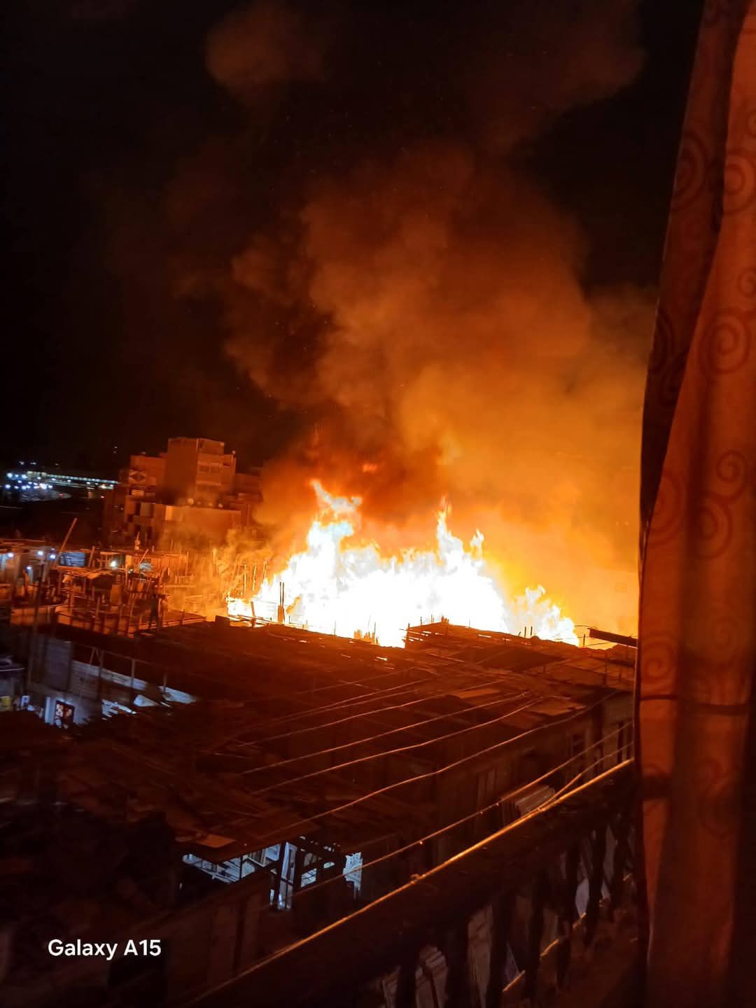 ولم يتمكن رجال المطافي حتى الآن من الوصول إلى مكان الحريق ، بسبب ضيق الشوارع والحواري المؤدية للحريق.
