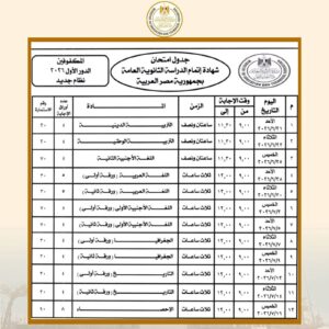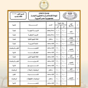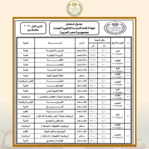 وكان شادي زلطة المتحدث الرسمي باسم وزارة التربية والتعليم والتعليم الفني، أعلن الانتهاء من إعداد جداول امتحانات الدور الأول لشهادة إتمام الثانوية العامة للعام الدراسي 2026 / 2025