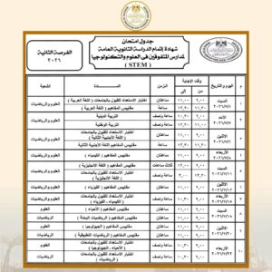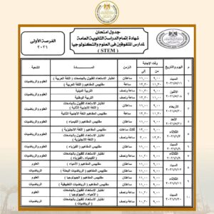 المتفوقين في العلوم والتكنولوجيا “STEM” (الفرصة الأولى) يوم 16 مايو 2026 وتنتهي يوم 20 يونيو 2026، وتبدأ امتحانات (الفرصة الثانية) يوم السبت 4 يوليو 2026 وتنتهي يوم 22 يوليو 2026.